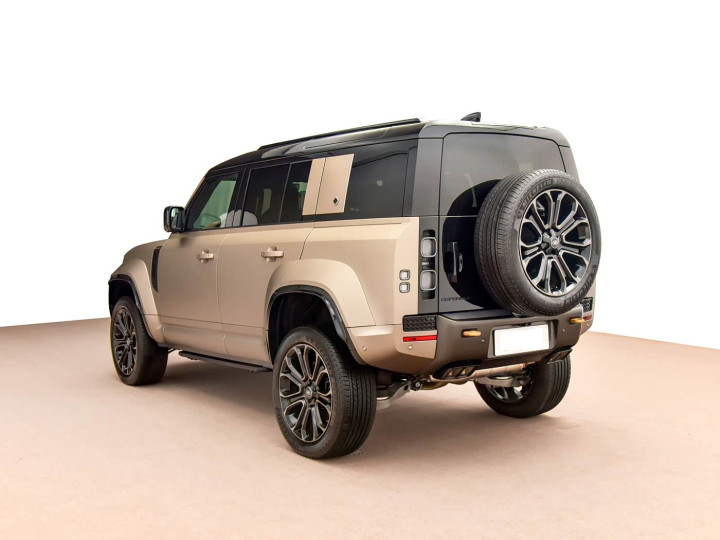 再来看车尾部分,车尾部分采用了垂直式车身设计,侧开式尾门搭配竖置的车门把手,整体感更强。中央悬挂全尺寸备胎,相比备胎罩设计更为粗犷硬朗。 下方的保险杠造型厚重,中央采用金属色饰板包裹,与车头相呼应,增强了整体感。OCTA版车型配备了四出亮黑排气系统。 从后方看,OCTA版几乎与标准版卫士无异,但刷上金铜色的拖车钩、改为方形的排气口以及车身侧面的“OCTA”标志,都彰显了其独特的身份。
